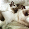 Description: two siamese cats curled up asleep